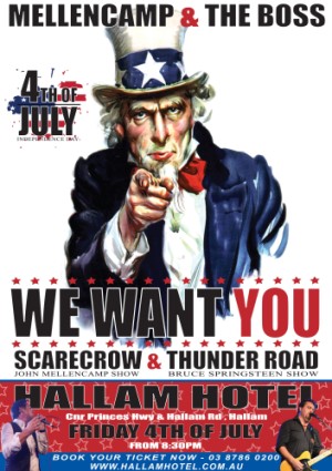 If you’re into American Rock at it’s very best then head down to the Hallam Hotel as we team up with Thunder Road the Aussie Springsteen show to celebrate American Independance day “Aussie” style.