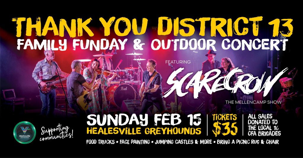 Grab a chair, pack a picnic rug, and head to Healesville Greyhounds this Sunday, February 15th, for a fantastic afternoon supporting Healesville’s incredible local Country Fire Authority Brigades – ‘District 13’.