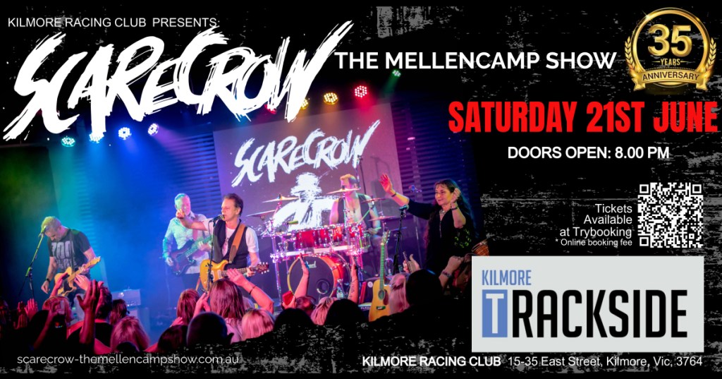 Get ready to experience the ultimate Mellencamp Show – a powerful night of heartland rock hits, raw energy, and nostalgic vibes! We’ll be live at a great venue, located in a modern entertainment complex, on the edge of the Kilmore Race Track – Kilmore Trackside. The perfect setting for a night of live music, great company, and unforgettable memories. Whether you grew up on Mellencamp or just love classic rock done right, this show will have you singing along all night. Tag your crew, grab your tickets, and get ready for a rockin’ good time!