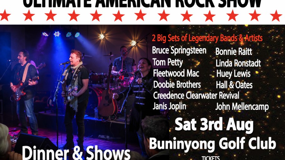Best Night Out & Gizakiss Music are proud to announce the ‘Twilight at The Bowl’ series of Summer Concerts with our fabulous partners at the Ringwood Bowls Club in 2020. This event is also a family affair with an onsite Buffet ticket option available. So gather your family & friends together to share an evening of live music and great food. The Ultimate American Rock Show are excited to be a part of this live music Summer Concert series on Sunday 29th March 2020. Yet another great Xmas Gift option…